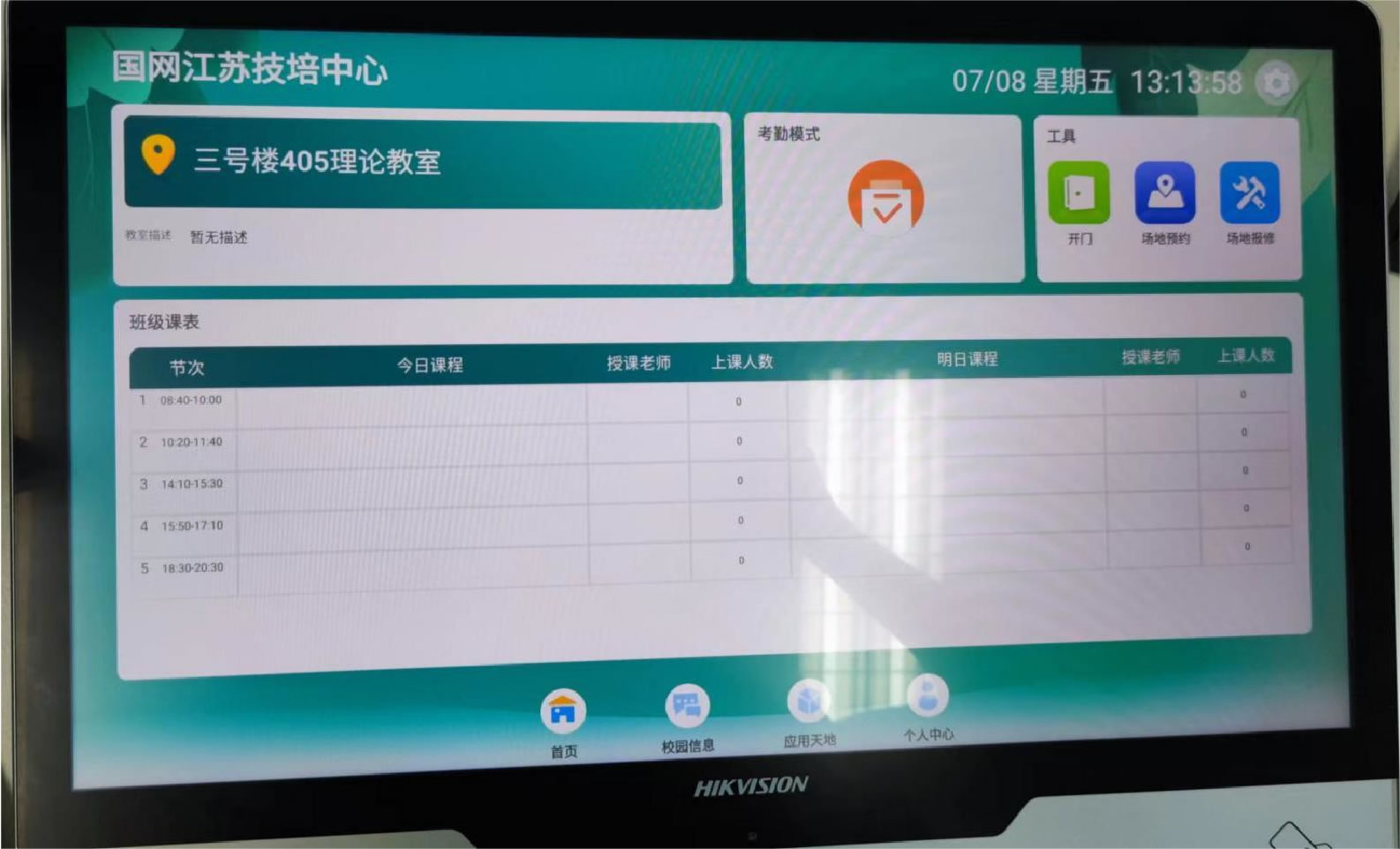 在各教室和实训室外安放电子班牌系统终端,电子班牌前端实时显示班级课程信息、教师信息、学员信息等,学生刷卡或指纹入学。后台根据电子班牌教室使用率等数据生成相关报表,通过数据对比分析,以便制定合理的教室的使用规划,进一步提升培训效率和质量。